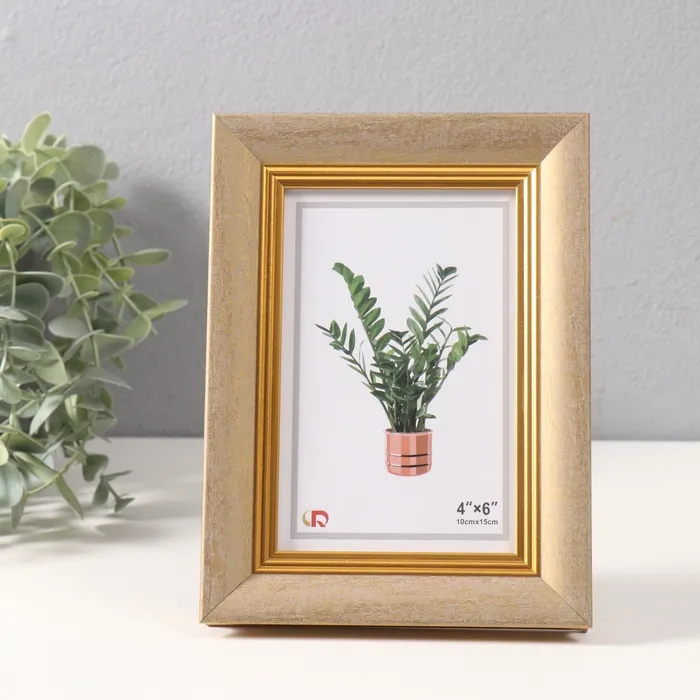 Фоторамка 10×15 см «Габриэль», пластик, золотая с золотой полосой, 2.2×14×19 см
