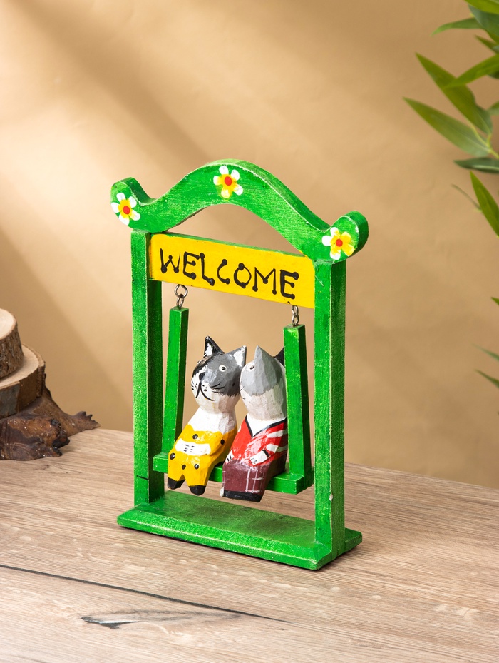Сувенир интерьерный «Кошечки на качелях», 15×7×25 см, дерево, зелёный