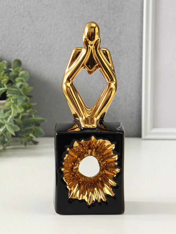 Сувенир керамика «Ожидание. Человек», чёрный с золотом, 7×9.5×26 см