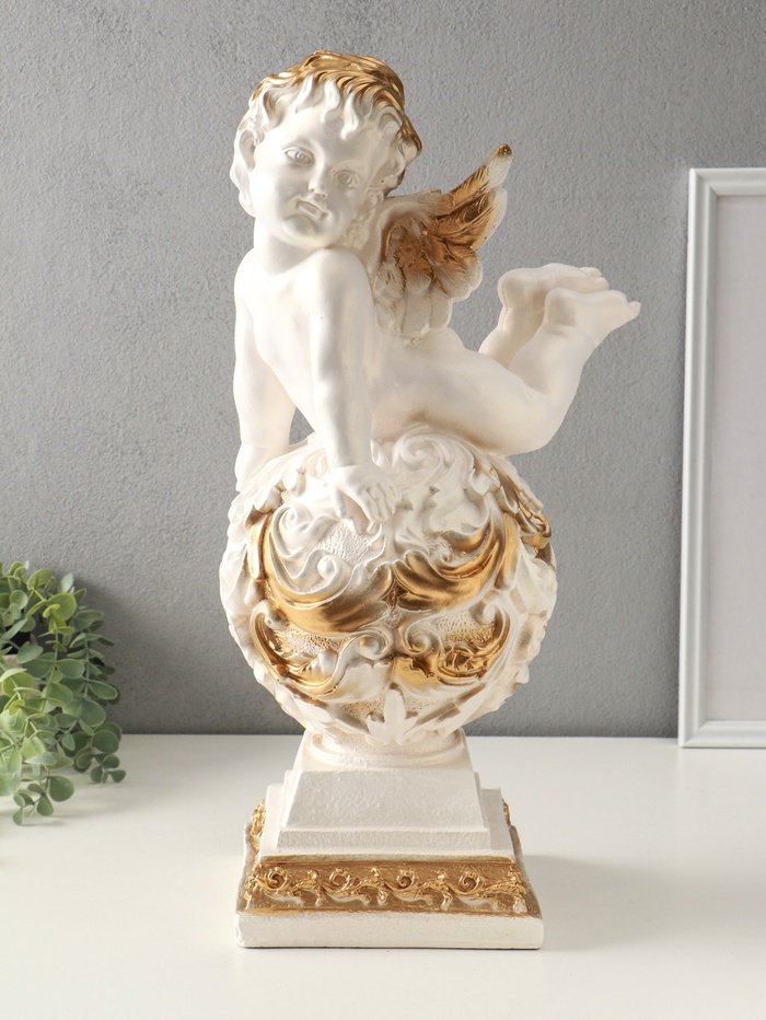 Фигура гипс «Ангел на шаре», 50×20×25 см, белый с золотом