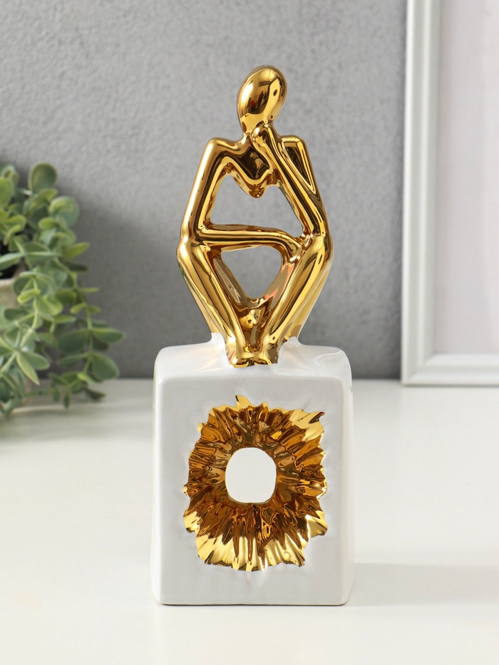 Фигура керамика «Задумчивый человек», белый с золотом, 7×9.5×26 см