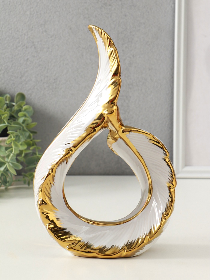 Фигура керамика «Изогнутое пёрышко», белый с золотом, 9×17.5×29.5 см
