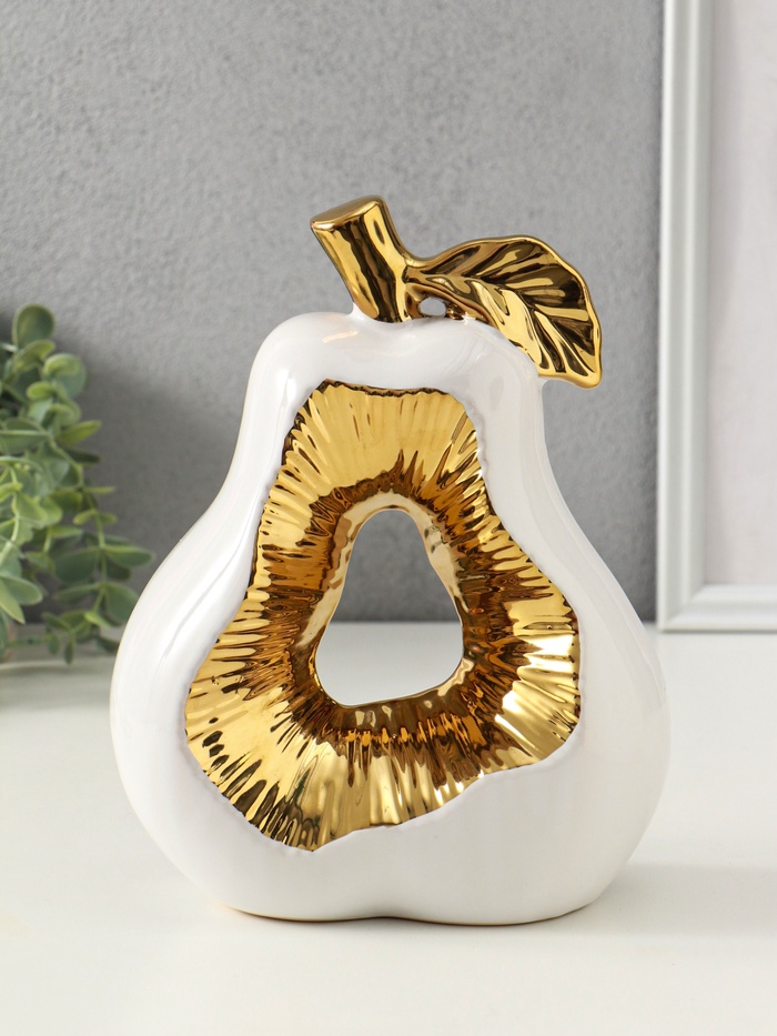 Фигура керамика «Срез груши», белый с золотом, 10×18×24.5 см