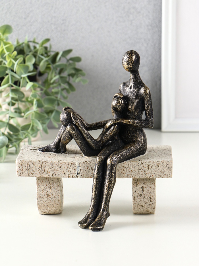 Фигура полистоун «Абстракция. Мама и ребенок на скамейке», бронза с бежевым, 17.5×10.5×19 см