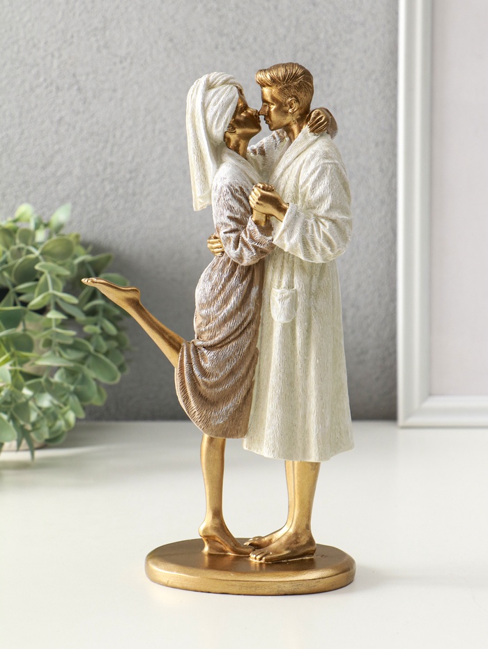 Фигура полистоун «Влюблённые в банных халатах», 7.5×13.5×26 см