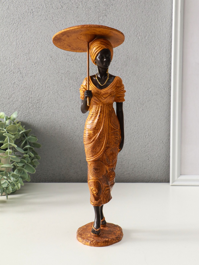 Фигура полистоун «Африканка в горчичном наряде с зонтом», 11.5×11.5×36.5 см