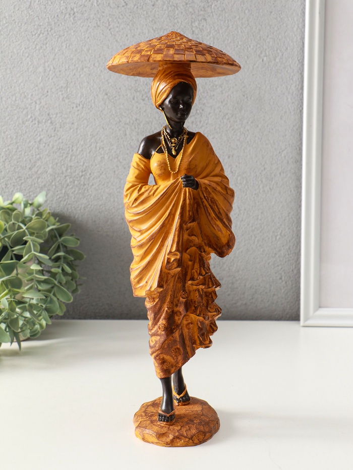 Фигура полистоун «Африканка в горчичном наряде, в шляпе», 11.5×11.5×33.5 см