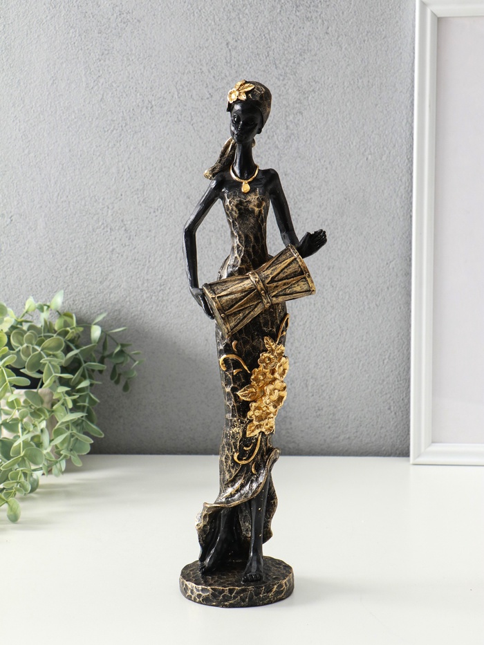 Фигура полистоун «Африканка в косынке с цветами и барабаном», чёрный, 8.5×8.5×39 см