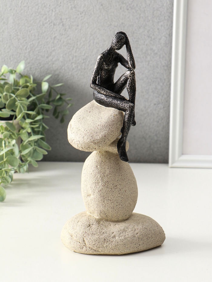 Фигура полистоун «Абстракция. Мыслитель и сад камней», бронза с бежевым, 12×9×25.5 см