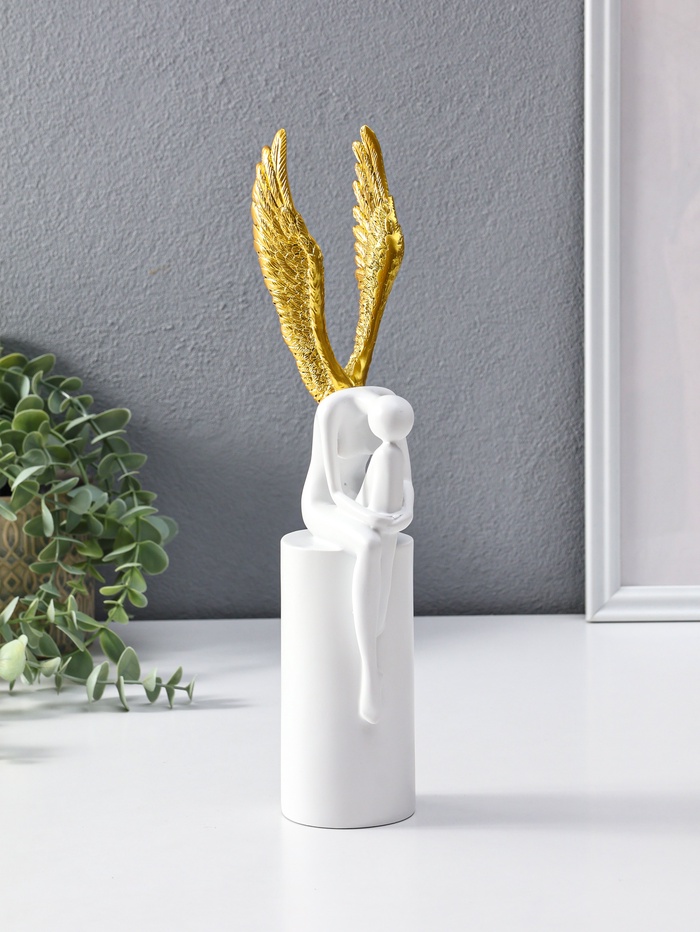 Фигура полистоун «Ангел», белый с золотом, 6×8.3×31 см