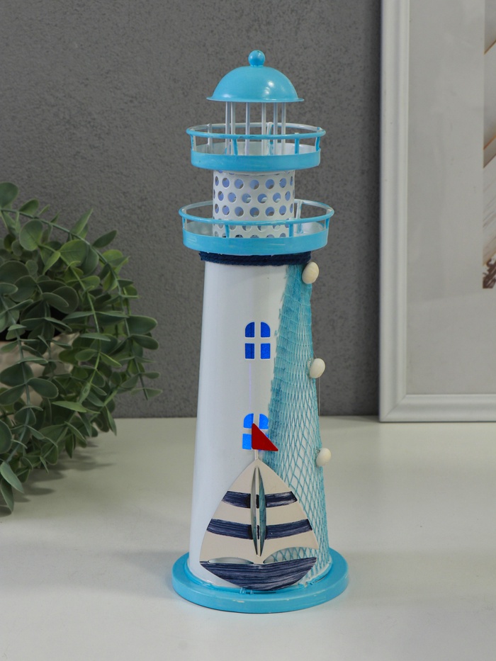 Фигура светящаяся «Маяк с корабликом и сеткой», голубой, 3×LR1130, RGB, LED-ночник, 7.5×7.5×18 см