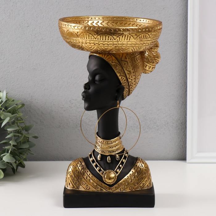 Фигурка - подставка для мелочей полистоун «Африканка с золотой тарелкой на голове», 30×17×17 см