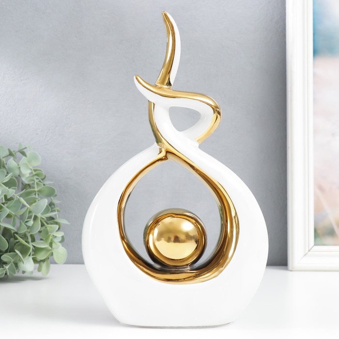 Фигурка керамика «Абстракция бесконечности. Прикосновение. Шар», белый с золотом, 28×6×17 см