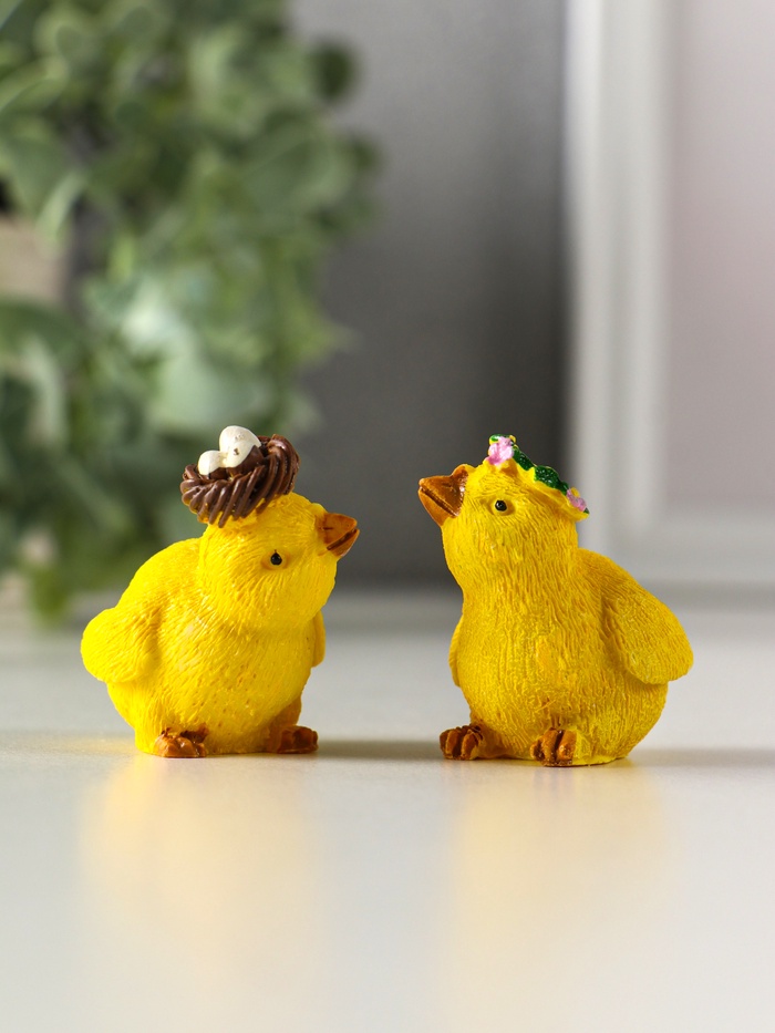 Фигурка полистоун «Цыплёнок в веночке, с гнездом», 4×3×4 см, МИКС
