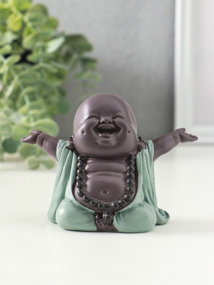 Фигурка полистоун «Счастливый хотей - приветствие солнца», зелёно-коричневый, 5×10.5×7.5 см