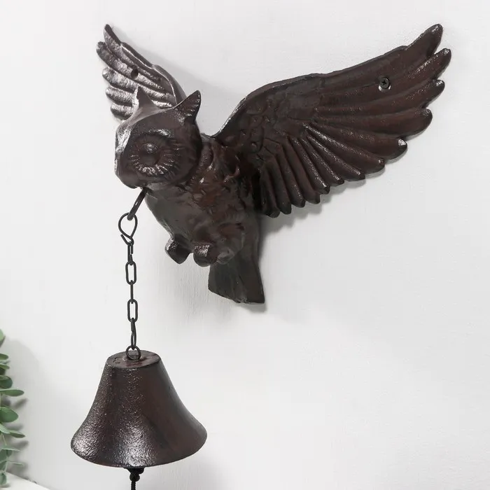 Колокол сувенирный чугун "Летящий филин" 33х13х36,5 см