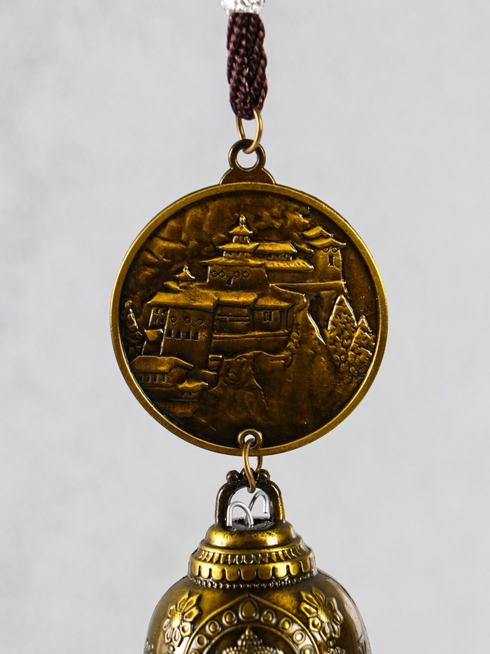 Колокольчик подвесной металл «Монета с буддой», 1 колокол, d=4.8 см, 39×5.3×4.8 см