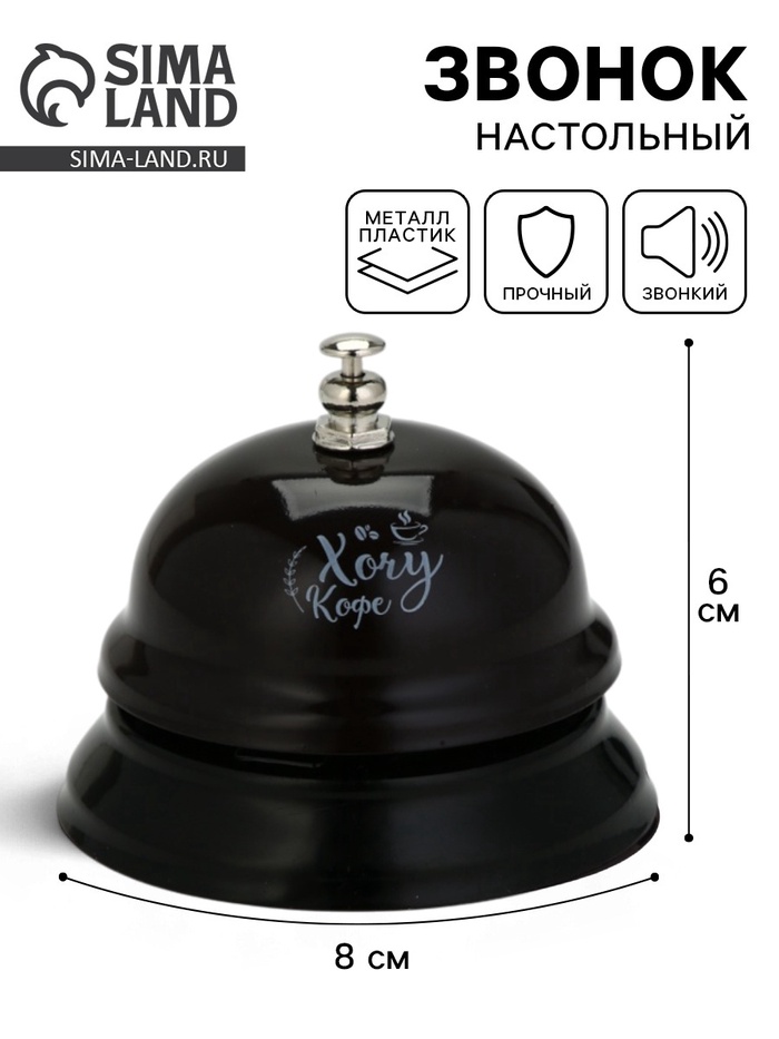 Звонок настольный "Хочу кофе", 8 х 6 см, коричневый