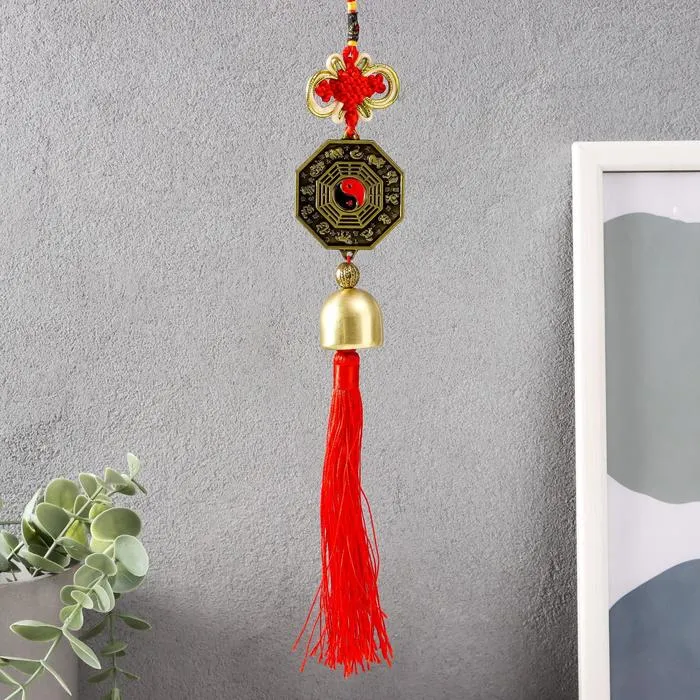 Колокольчик металл «Монета Инь-ян с узлом счастья», 1 колокол, 38×5×3 см