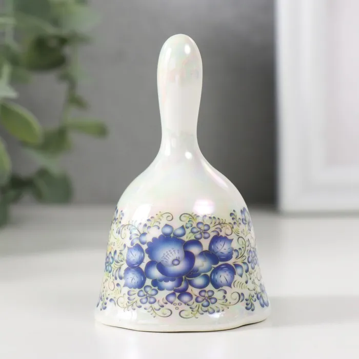 Колокольчик керамика "Синие цветы с завитками" 4,8х4,8х7,8 см