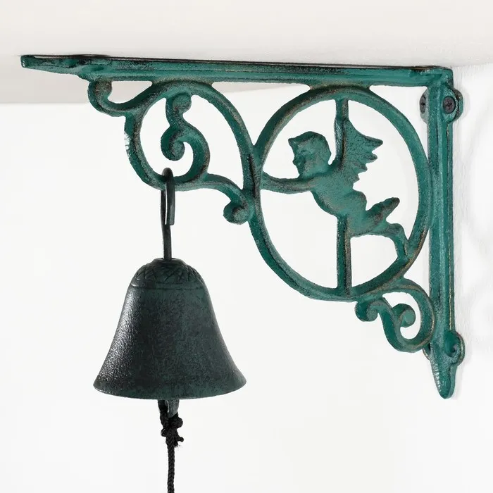Колокол сувенирный чугун "Ангелочек в круге" зелёный 22х7х16,2 см