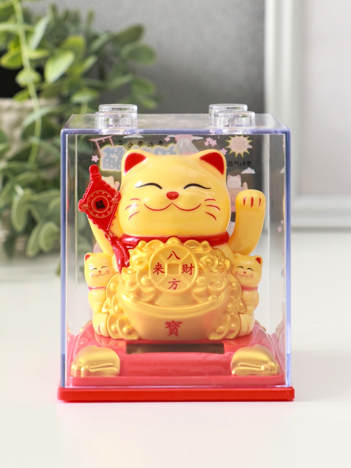 Маятник настольный антистресс «Жёлтый Манэки-нэко с котятами и золотом», 8×8×8.2 см