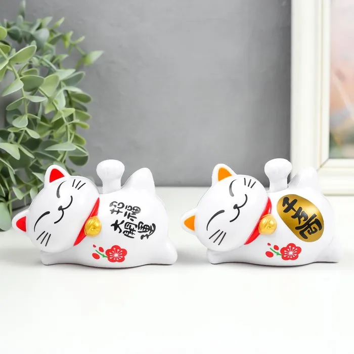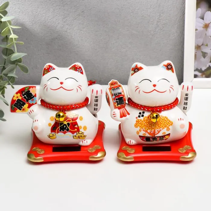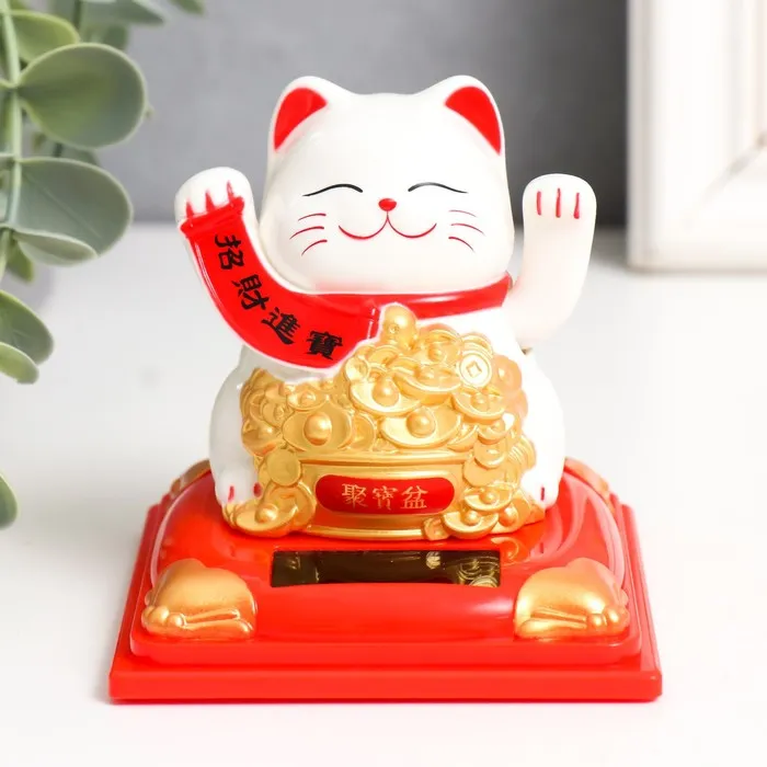 Маятник пластик от солнечной батареи "Белый Манэки-нэко с с горой слитков" 7х7х7,5 см