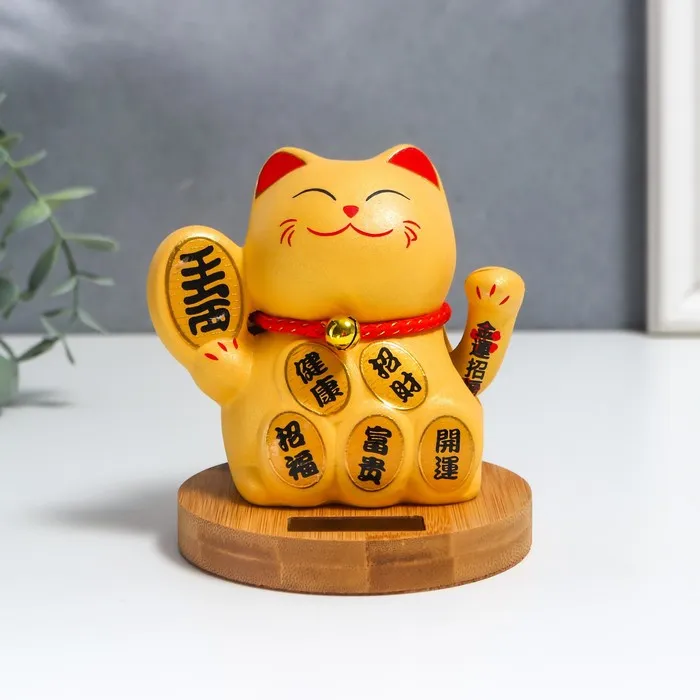 Маятник керамика "Манэки-нэко с иероглифами" от солнечных батарей 10х10х12 см
