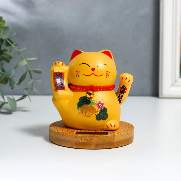 Маятник пластик от солнечной батареи "Кот манэки-нэко" жёлтый 9,5х10х9,5 см