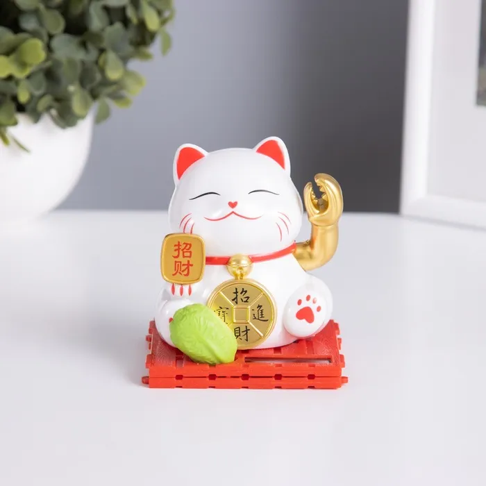 Маятник керамика "Манэки-нэко с гармонью" от солнечных батарей 11х13х15 см