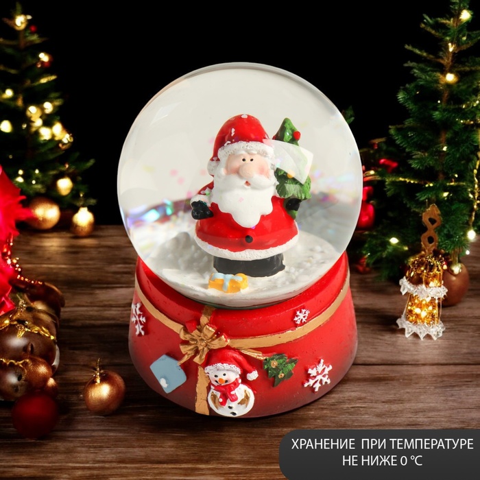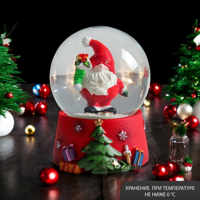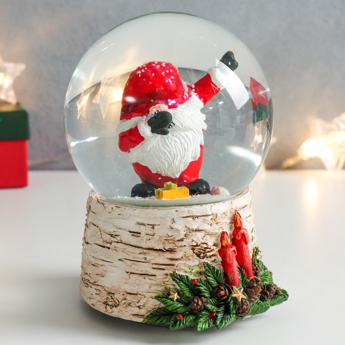 Снежный шар новогодний стеклянный «Дед Мороз - дэб», музыкальный, 11.5×11.5×14 см