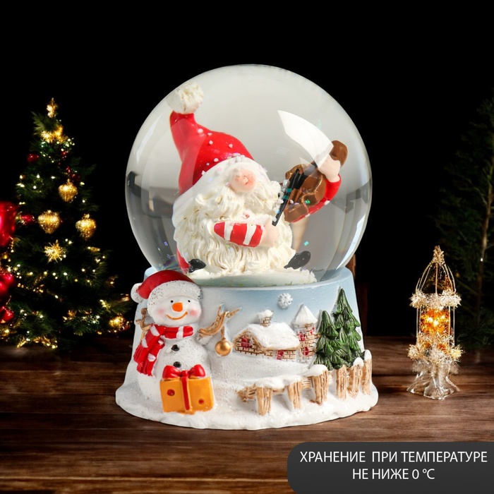Снежный шар новогодний стеклянный «Дед Мороз со скрипкой», 7×8×9 см