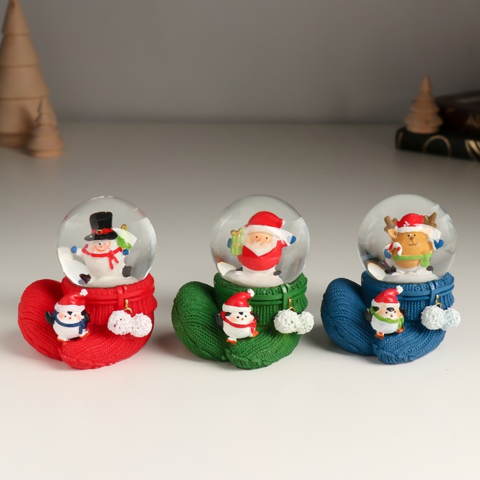 Снежный шар новогодний стеклянный «Персонаж на варежке с пингвином», 5.5×6.2×7 см, МИКС