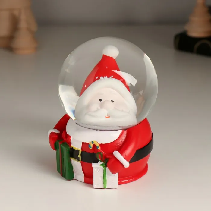 Снежный шар новогодний стеклянный «Дед Мороз с подарками в шлеме-пузыре», световой, 6.5×6.7×9.5 см