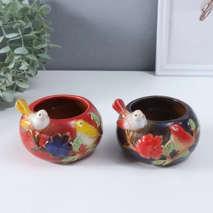 Сувенир керамика подставка "Серая птичка на чаше" МИКС 11х11,5х8,5 см