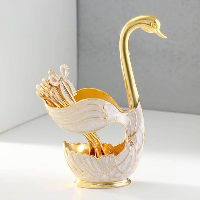 Набор посуды сувенирной: ложки чайные с бантиком 6 шт. в подставке «Лебедь с перламутром», 5×11×15 см
