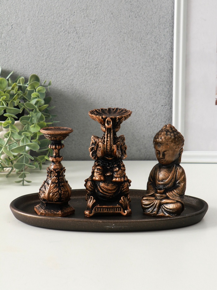 Набор фигурок на подставке «Буддийский», высота 13 см, винтажная бронза