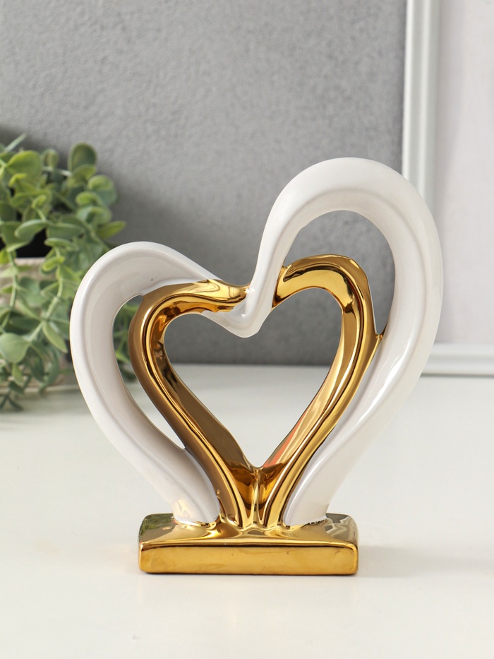 Фигурка керамика «Сплетённые сердца», белый с золотом, 5.5×17.5×19.5 см
