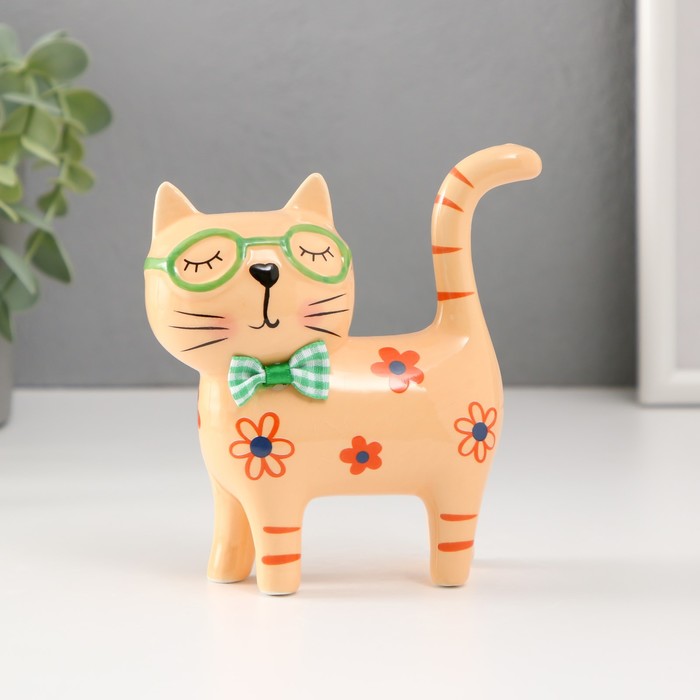 Фигурка керамика «Кошечка в зелёных очках, в цветочках», жёлтый, 11.6×4.3×11.5 см