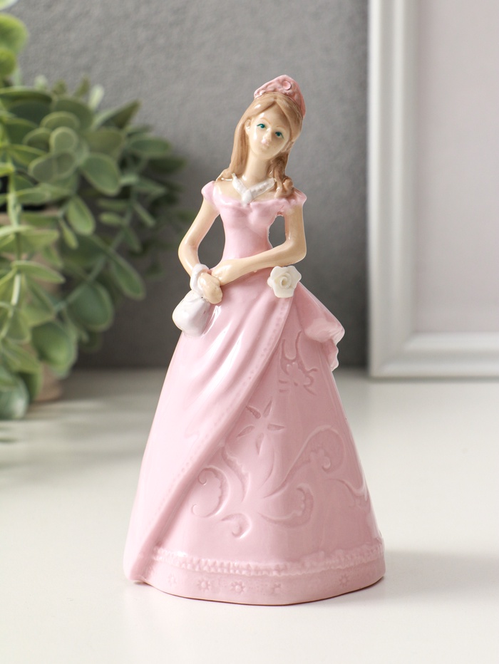 Фигурка керамика «Леди в розовом платье с сумочкой», 6.6×7.5×14.8 см