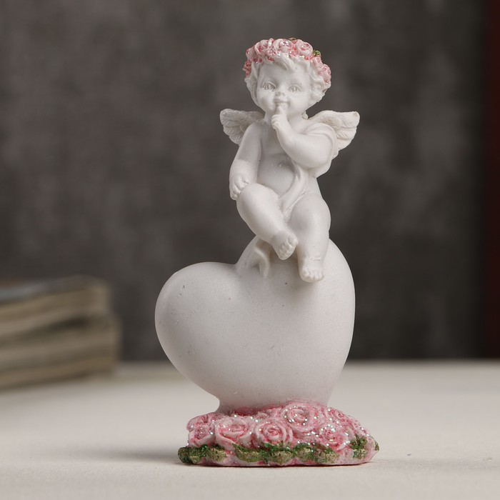 Фигурка полистоун «Белоснежный ангел в розовом веночке верхом на сердце», 8.5×4.3×2.2 см