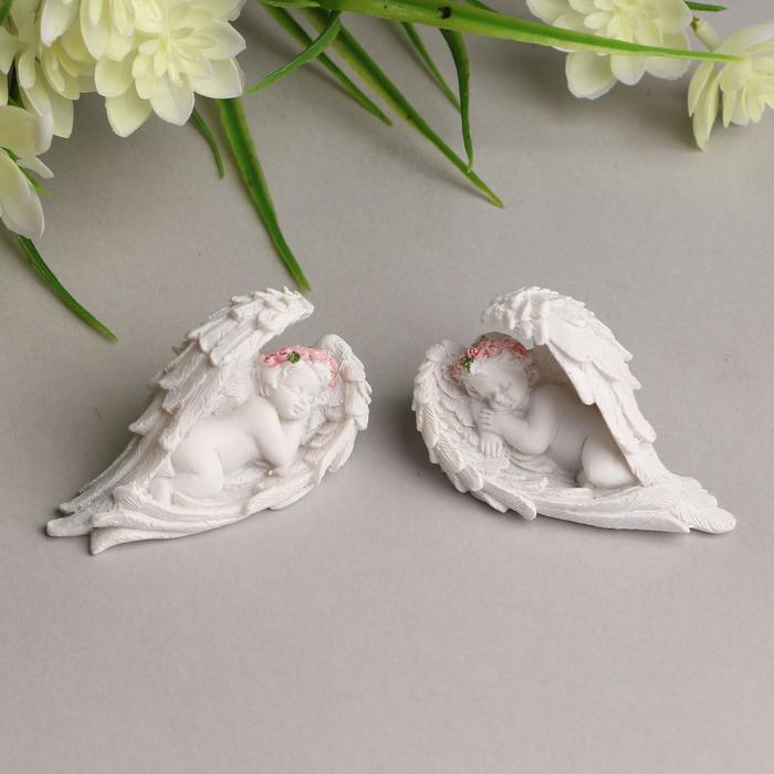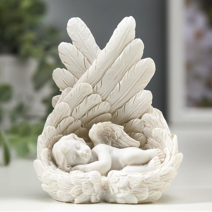 Фигурка полистоун «Белоснежный ангел малыш спящий в крыльях», 8.5×7×4 см