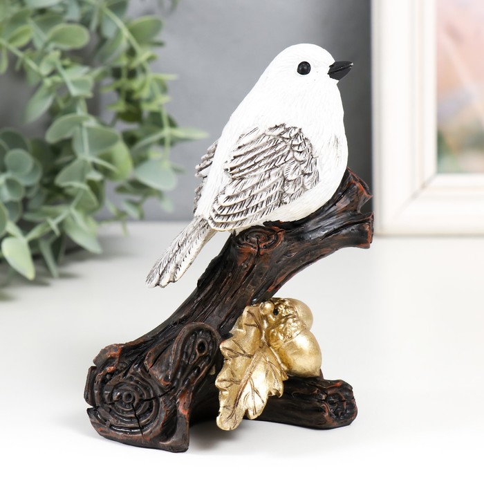 Фигурка полистоун «Белая птичка на ветке жёлудя», под золото, 9×5.5×13 см