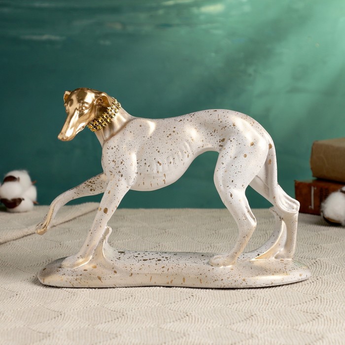 Фигурка полистоун «Борзая», белая с золотым, 25×17 см