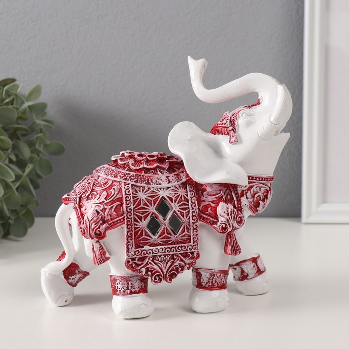 Фигурка полистоун «Белый слон. Бордовая попона с цветком и стразой», 17.5×9×17 см