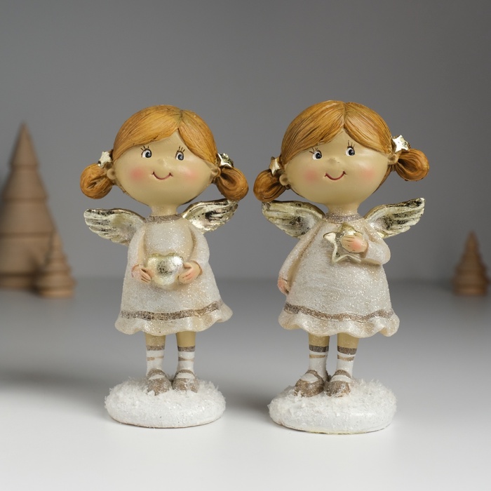 Фигурка полистоун «Ангелочек с хвостиками, в сером платье», 6.5×4.5×12 см, МИКС
