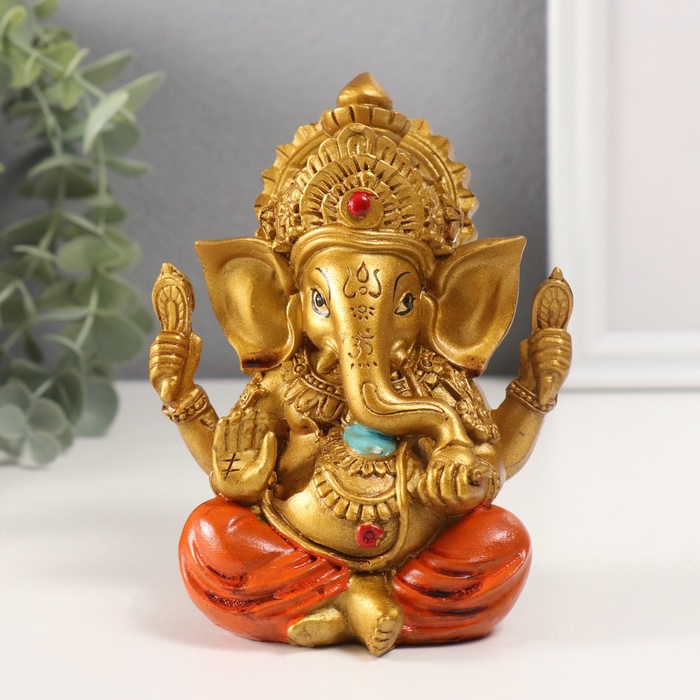 Фигурка полистоун «Ганеша, в оранжевых шароварах», под бронзу, 10×10×12.5 см