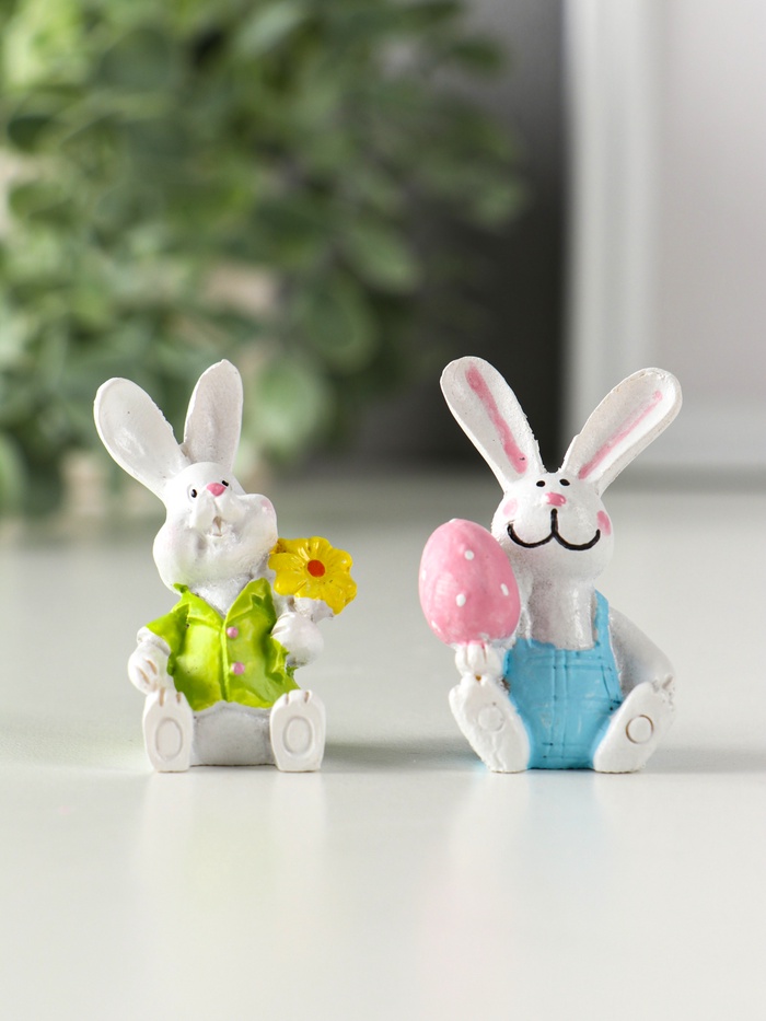 Фигурка полистоун «Белый зайка с яйцом/букетом», 2.2×3×4.2 см, МИКС