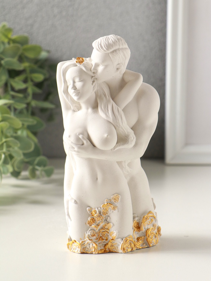 Фигурка гипс «Влюбленные», 14×6 см, белый с позолотой