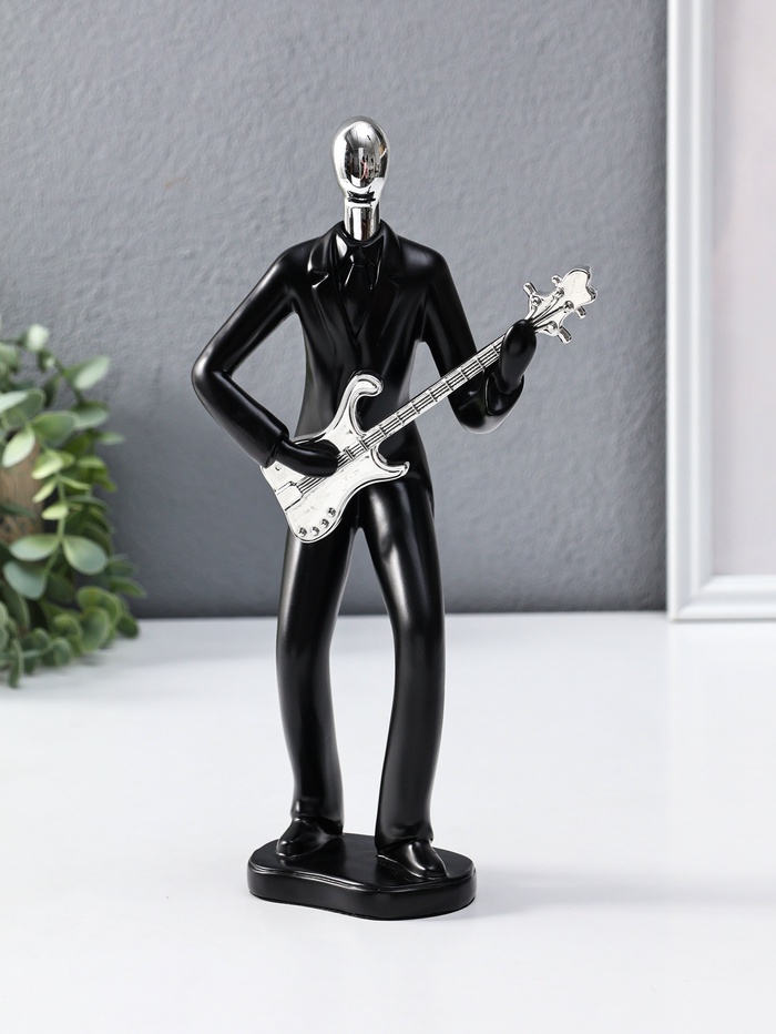 Фигура полистоун «Гитарист», чёрный с серебром, 6.5×15.2×27.5 см